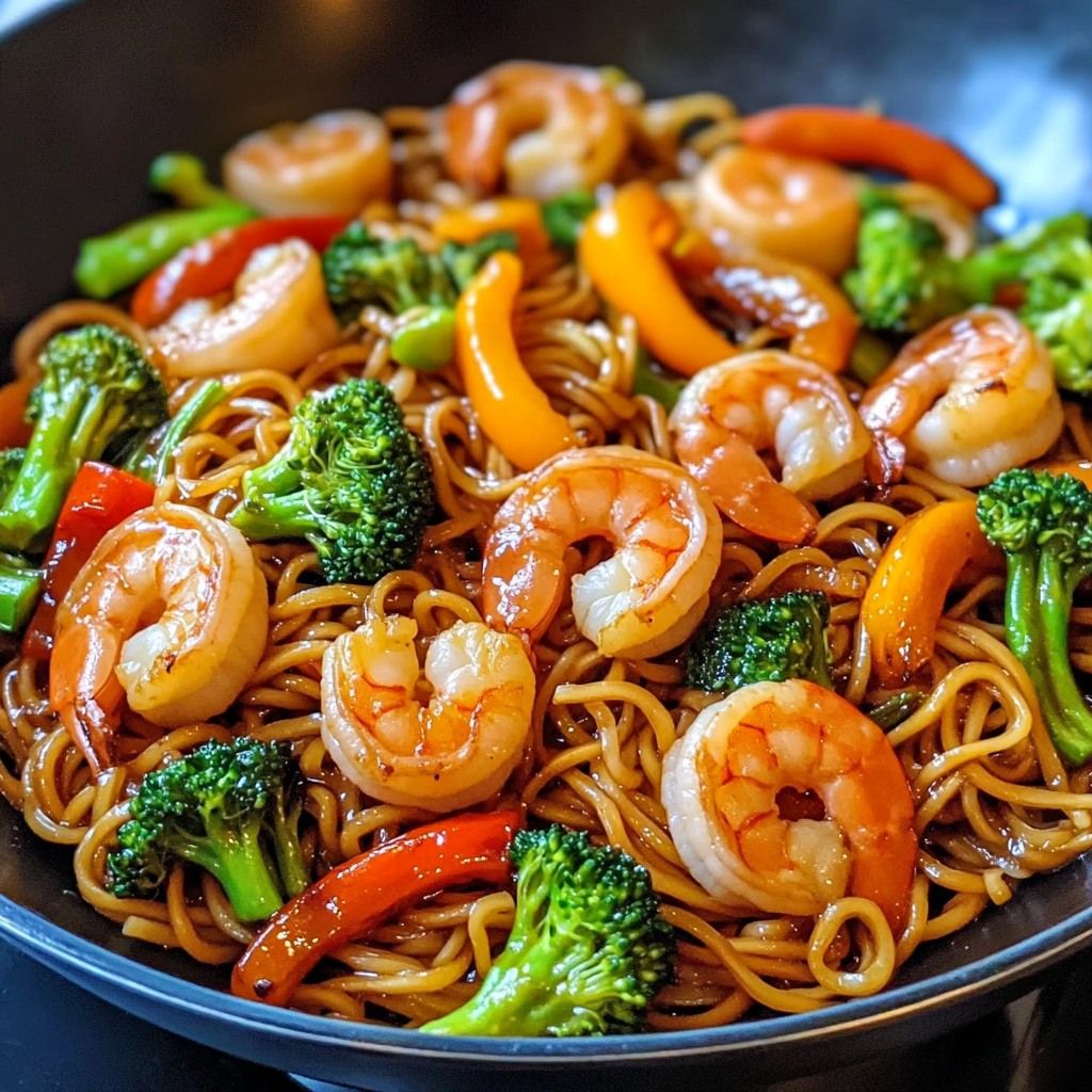 তাজা সবজি, নরম চিকেন আর রসালো প্রনসের সঙ্গে মিশ্রিত চাউমিন – রঙিন ও মজাদার এক প্লেট।